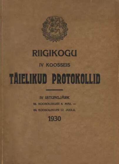 Kirjastus: Riigikogu, 1930