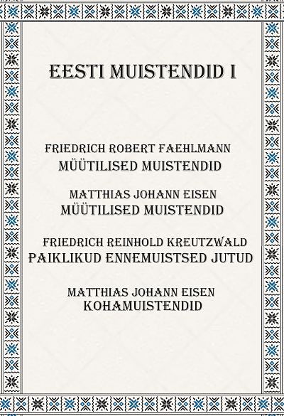 Eesti Muistendid I Müütilised muistendid, kohamuistendid, „Paiklikud ennemuistsed jutud“ Autorid: Friedrich Robert Faehlmann, Matthias Johann